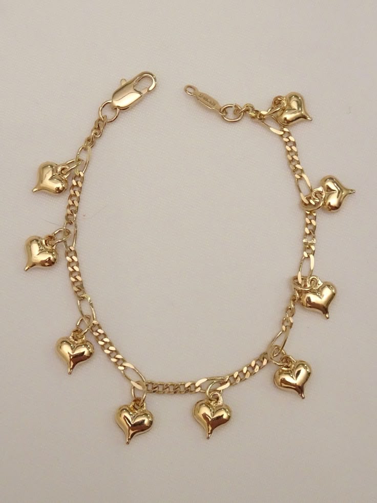 • Design: Intricate Figaro link chain with nine (9) high-polish puff heart charms.